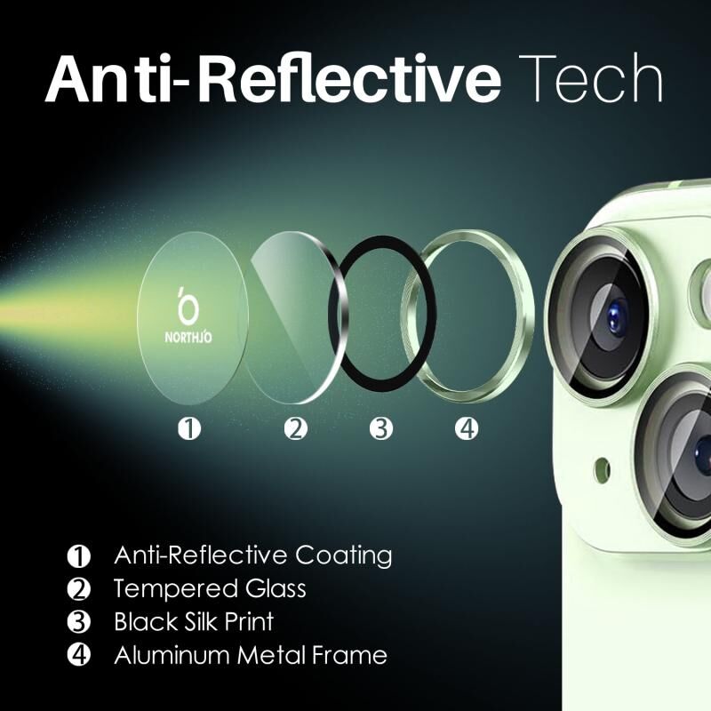 For iPhone 15 / 15 Plus / 14 / 14 Plus NORTHJO 3 Set 6pcs Camera Lens Protector Cover Metal Ring Film(Green) (NORTHJO)