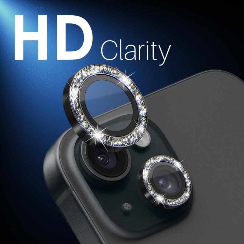 For iPhone 15 / 15 Plus / 14 / 14 Plus NORTHJO 3 Set 6pcs Camera Lens Protector Glitter Metal Ring Film(Black) (NORTHJO)