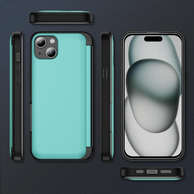 Θήκη τηλεφώνου για iPhone 15 3 σε 1 με αναδιπλούμενο στήριγμα (Κυανό)