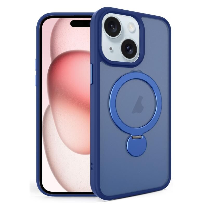 For iPhone 15 360 Degree Rotating MagSafe Magnetic Bracket Frosted Phone Case(Royal Blue)