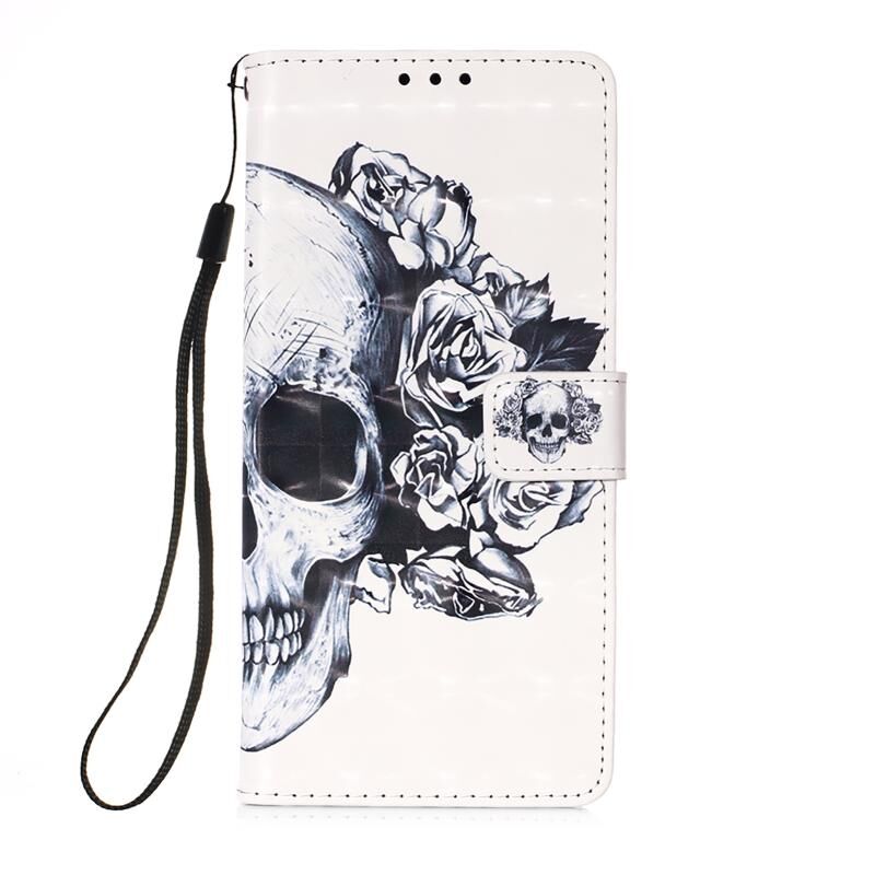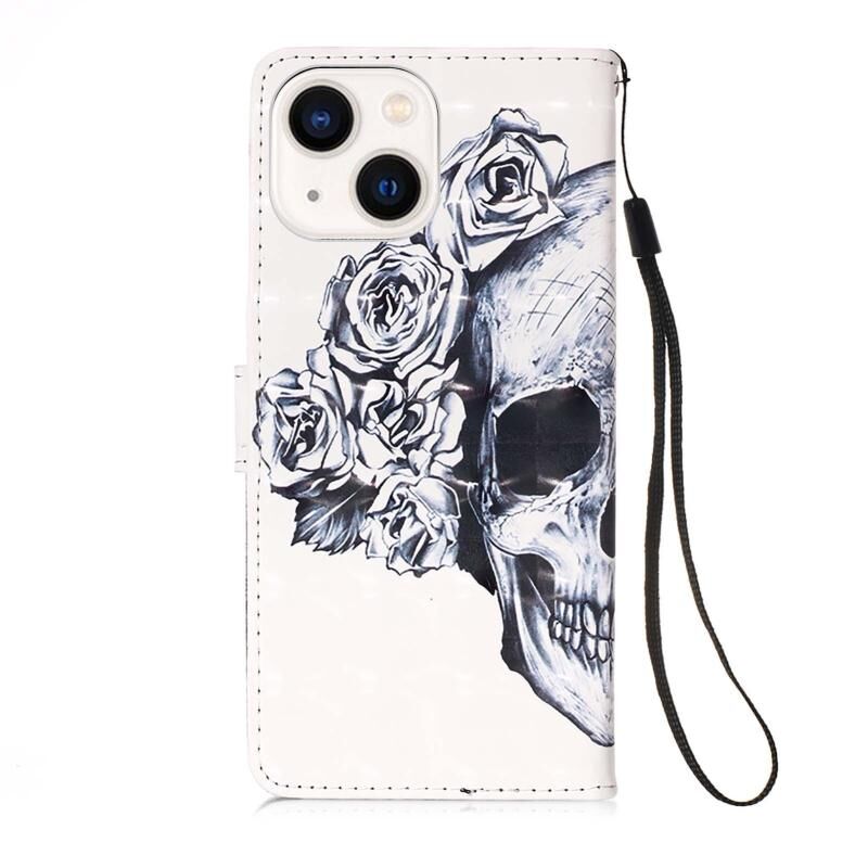For iPhone 15 3D Painting Horizontal Flip Leather Phone Case(Skull)