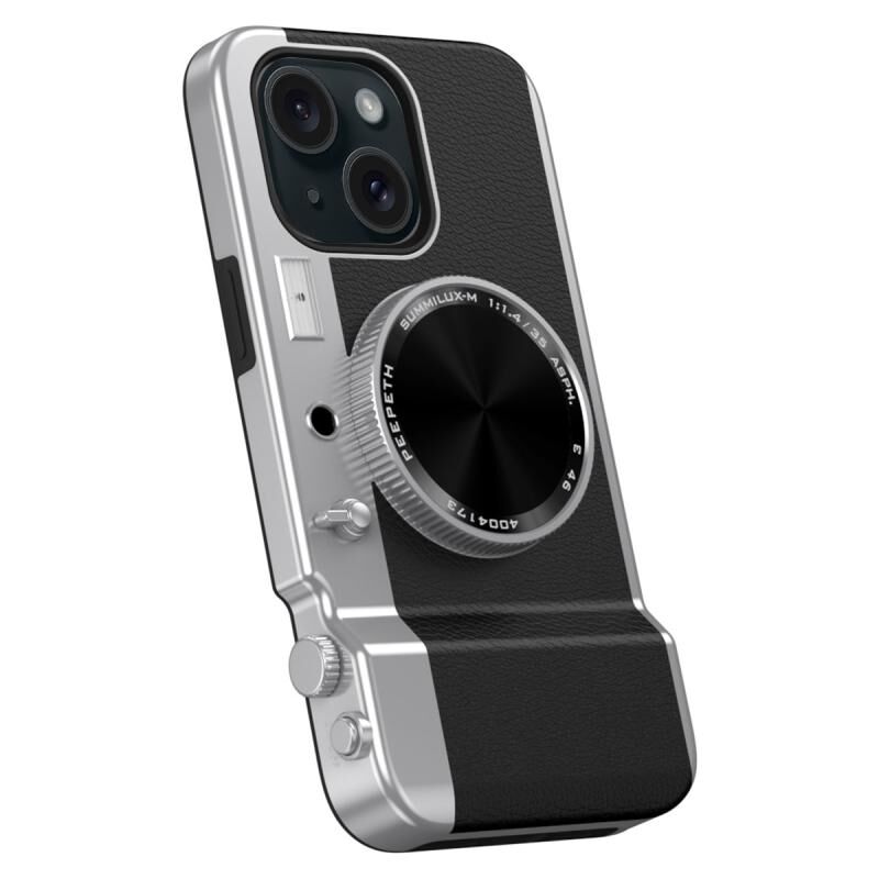 For iPhone 15 3D Retro Bluetooth Camera Magsafe Mirror Phone Case(Black)