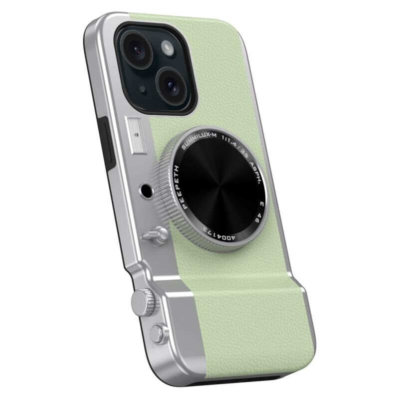 For iPhone 15 3D Retro Bluetooth Camera Magsafe Mirror Phone Case(Light Green)