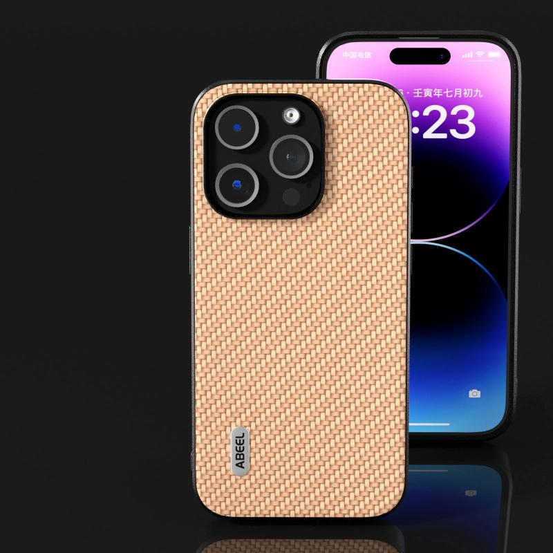 Θήκη Προστασίας για iPhone 15 ABEEL με Υφή Άνθρακα (Κίτρινο)
