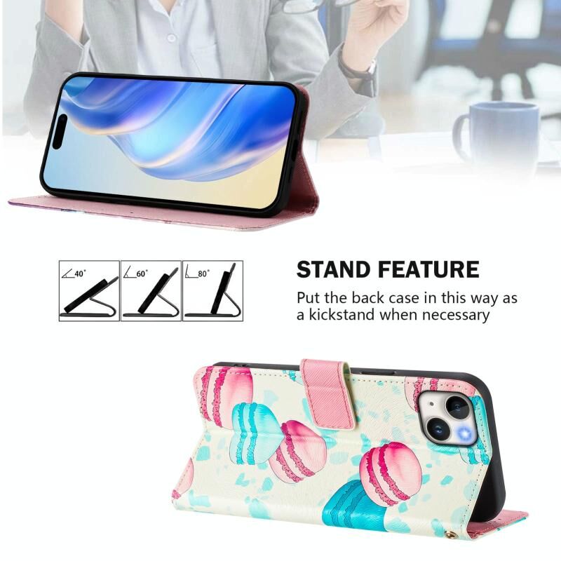 For iPhone 15 Art Colored Drawing Pattern Leather Phone Case(Cake)
