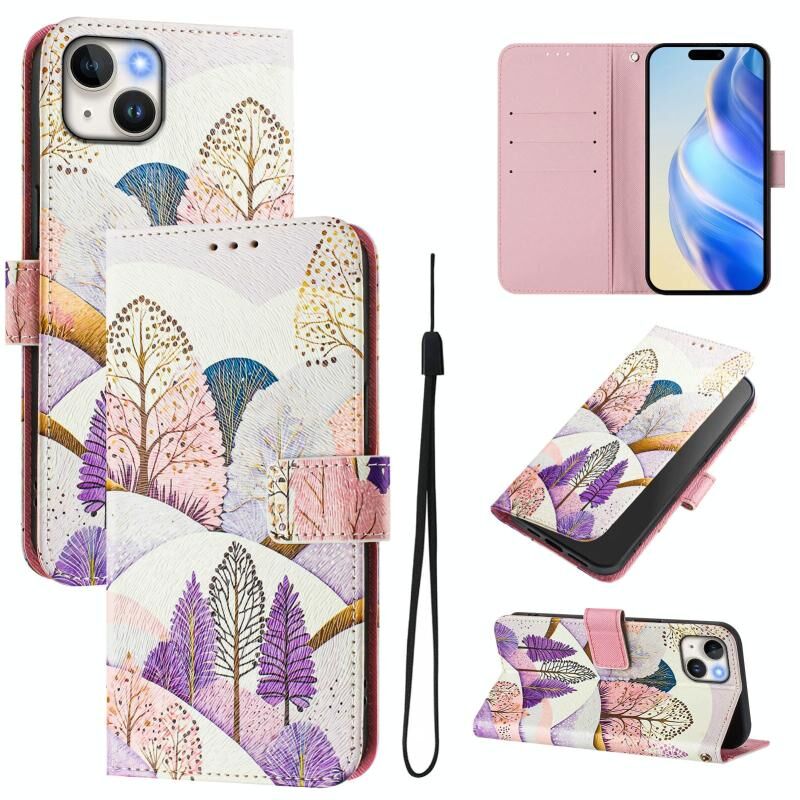 For iPhone 15 Art Colored Drawing Pattern Leather Phone Case(Landscape)