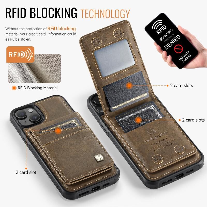 4. Θήκη για κάρτες: Διπλή μαγνητική αγκράφα πάνω-κάτω, μπορεί να χωρέσει 6 κάρτες.
