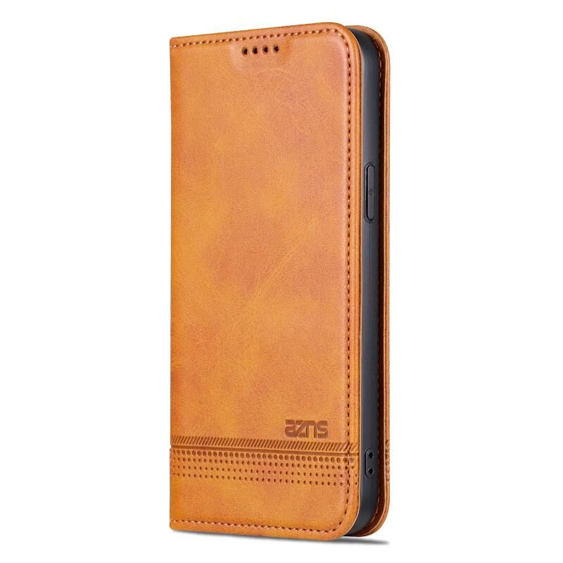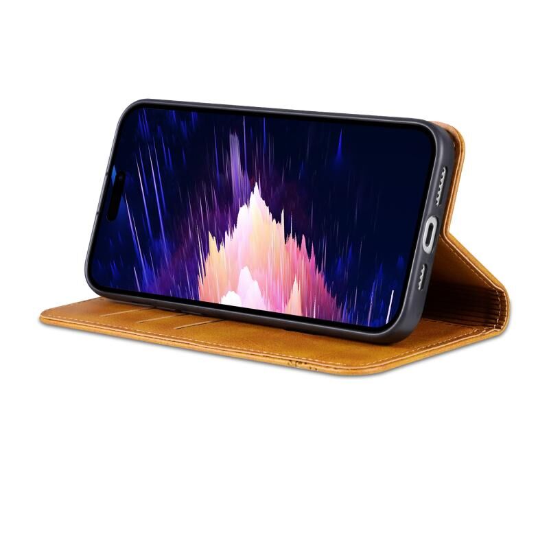 Θήκη τηλεφώνου από δέρμα μοσχαριού με μαγνητική υφή για iPhone 15 AZNS (Σκούρο Καφέ) (AZNS)