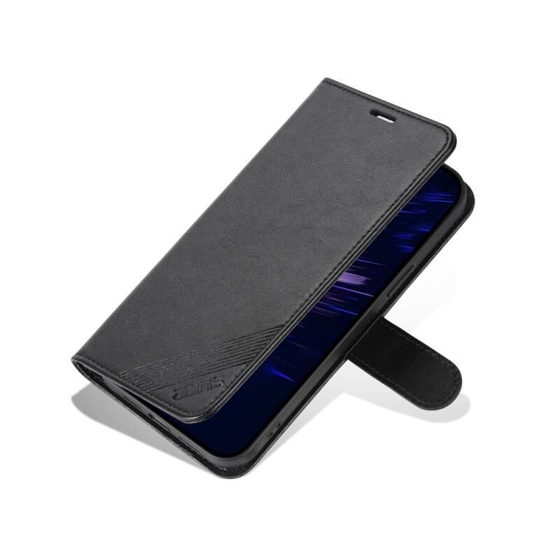 For iPhone 15 AZNS Sheepskin Texture Flip Leather Phone Case(Black) (AZNS)