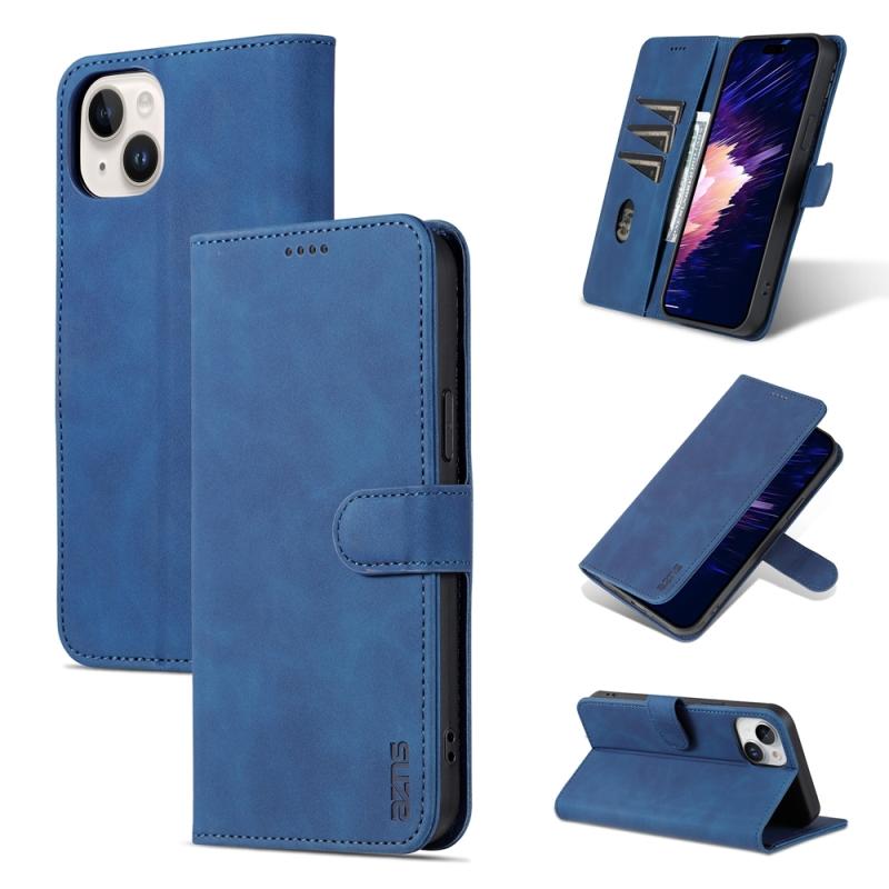 For iPhone 15 AZNS Skin Feel Calf Texture Flip Leather Phone Case(Blue) (AZNS)
