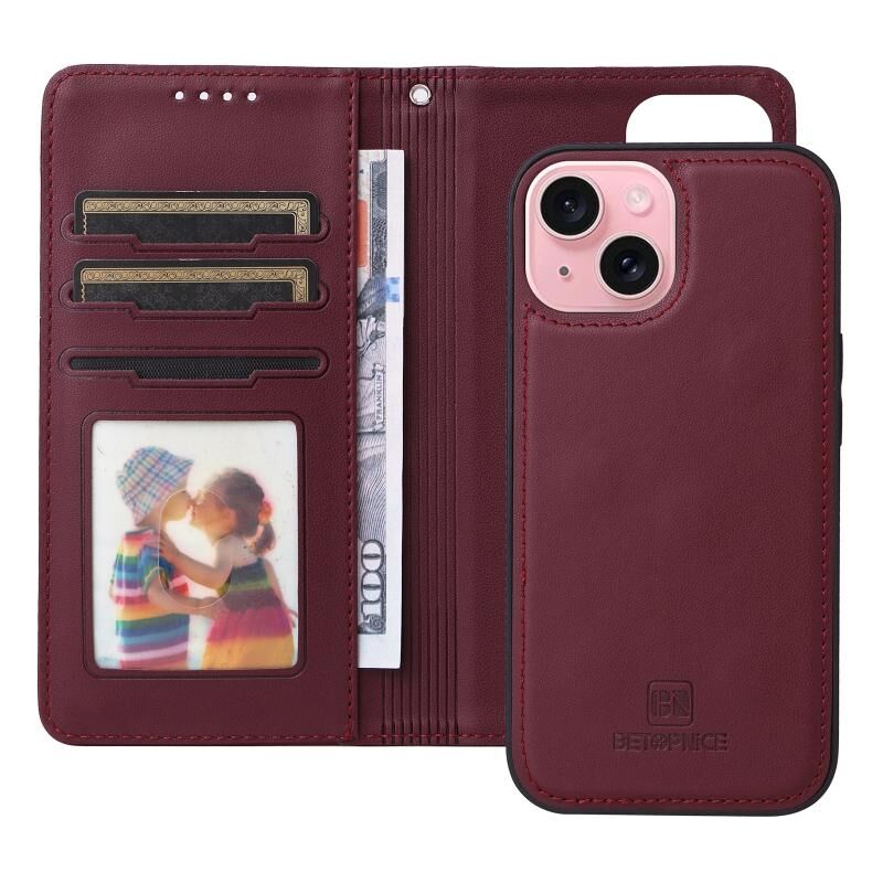 For iPhone 15 BETOPNICE BN-005 2 in 1 Detachable Imitate Genuine Leather Phone Case(Wine Red) (BETOPNICE)
