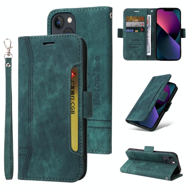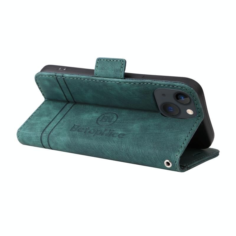 Θήκη τηλεφώνου από δέρμα με διπλή αγκράφα BETOPNICE για iPhone 15 (Μαύρο) (πράσινο)