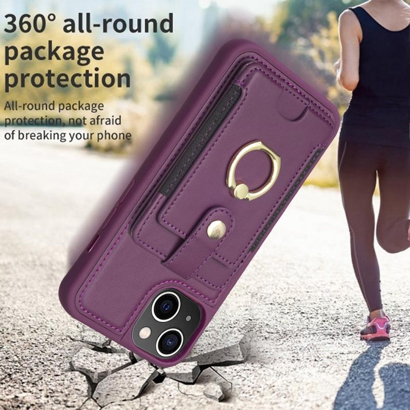 For iPhone 15 BF27 Metal Ring Card Bag Holder Phone Case(Dark Purple)