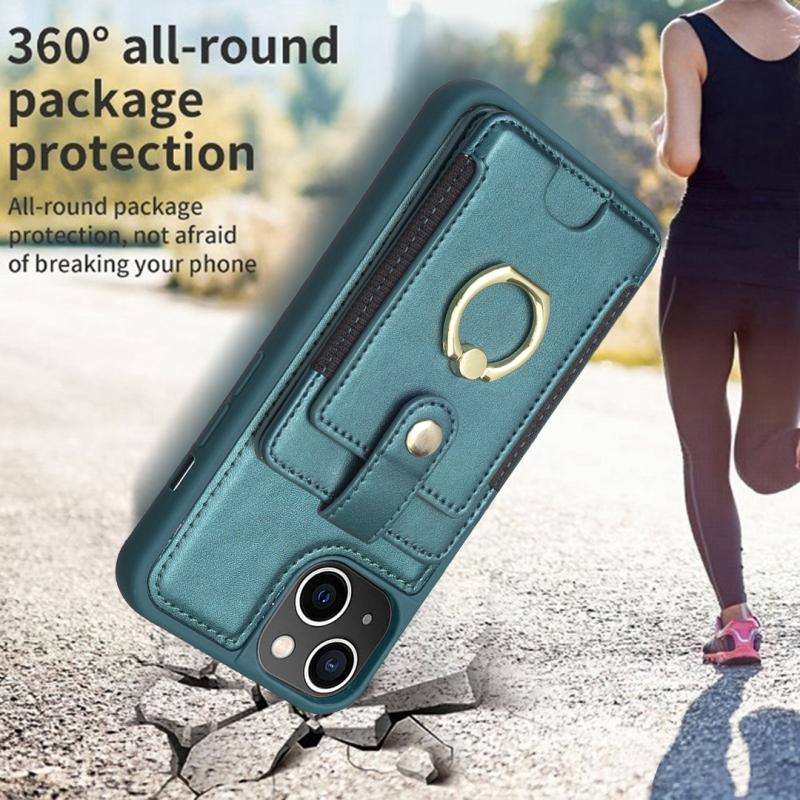 For iPhone 15 BF27 Metal Ring Card Bag Holder Phone Case(Green)