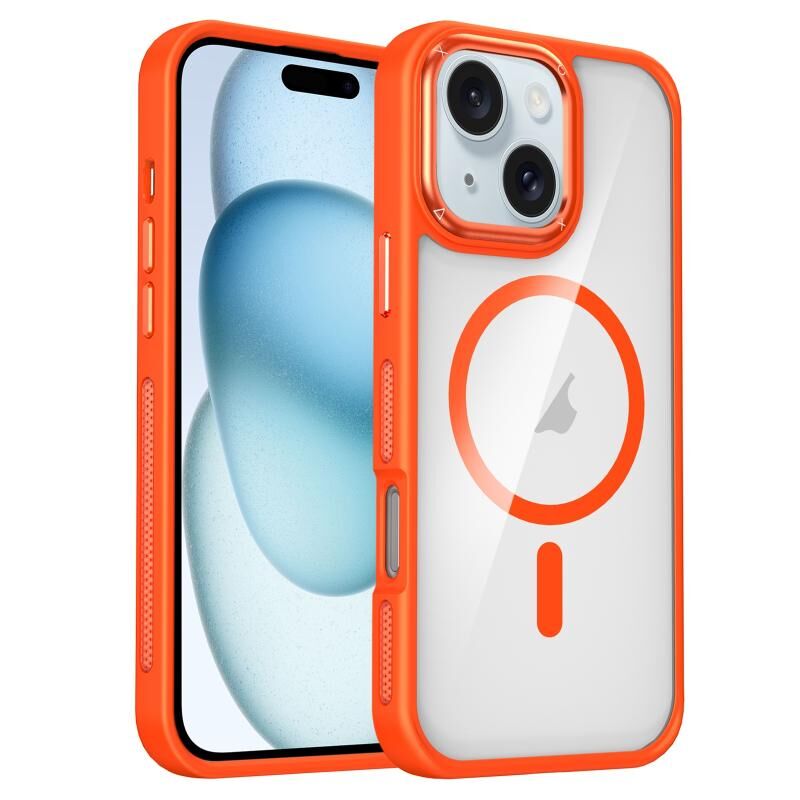 Θήκη τηλεφώνου για iPhone 15, διαφανής με μαγνητική σύνδεση MagSafe, με αίσθηση αναπνεύσιμου δέρματος (Πορτοκαλί)