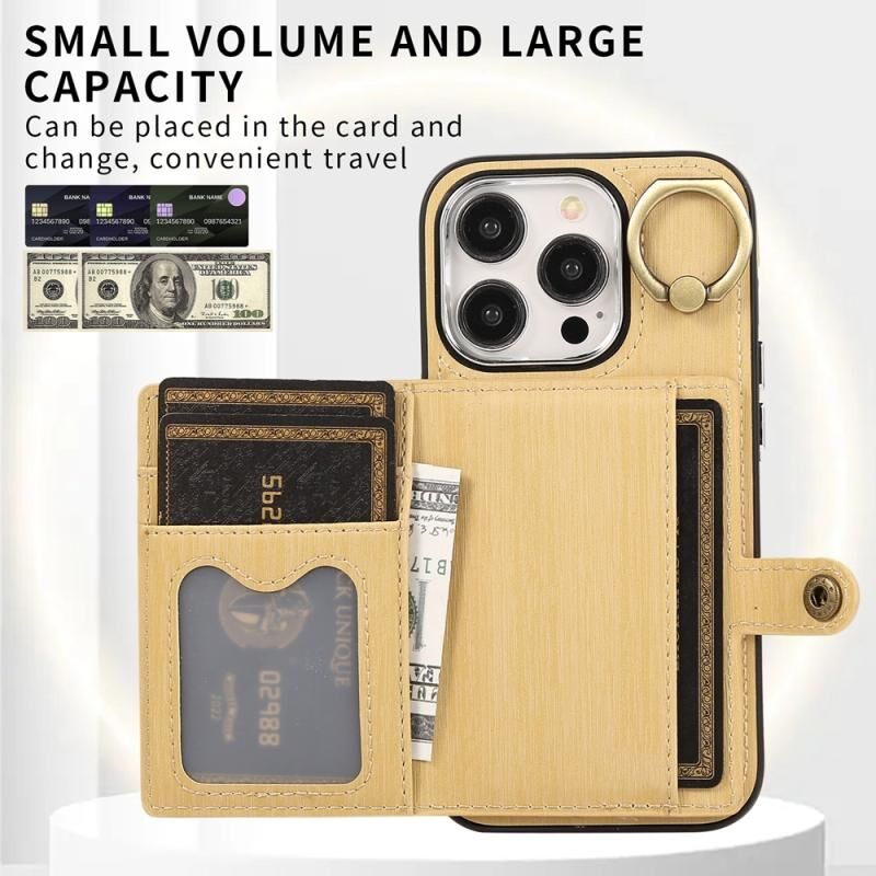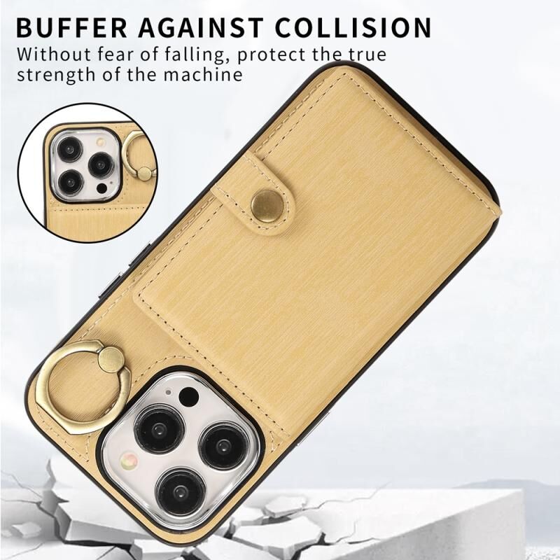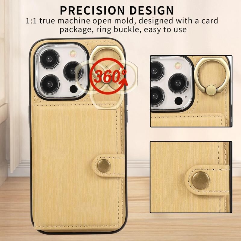 Θήκη τηλεφώνου για iPhone 15 με υφή βουρτσισμένου μετάλλου, δακτύλιο και θήκη πορτοφολιού (Κίτρινο)
