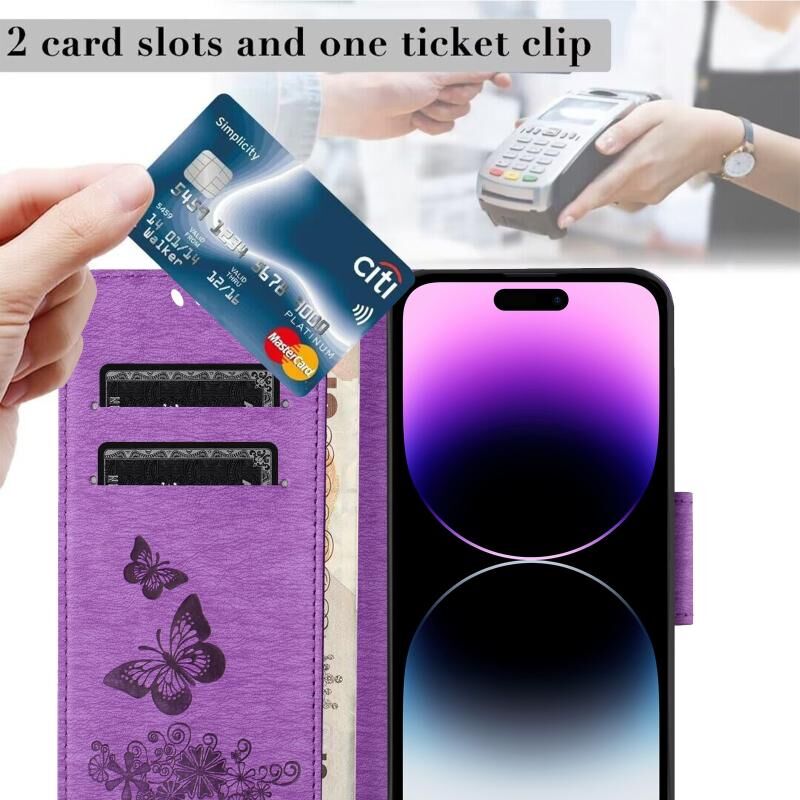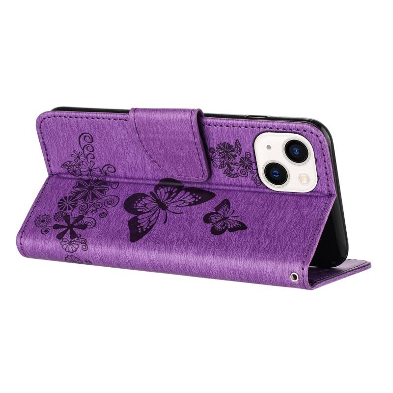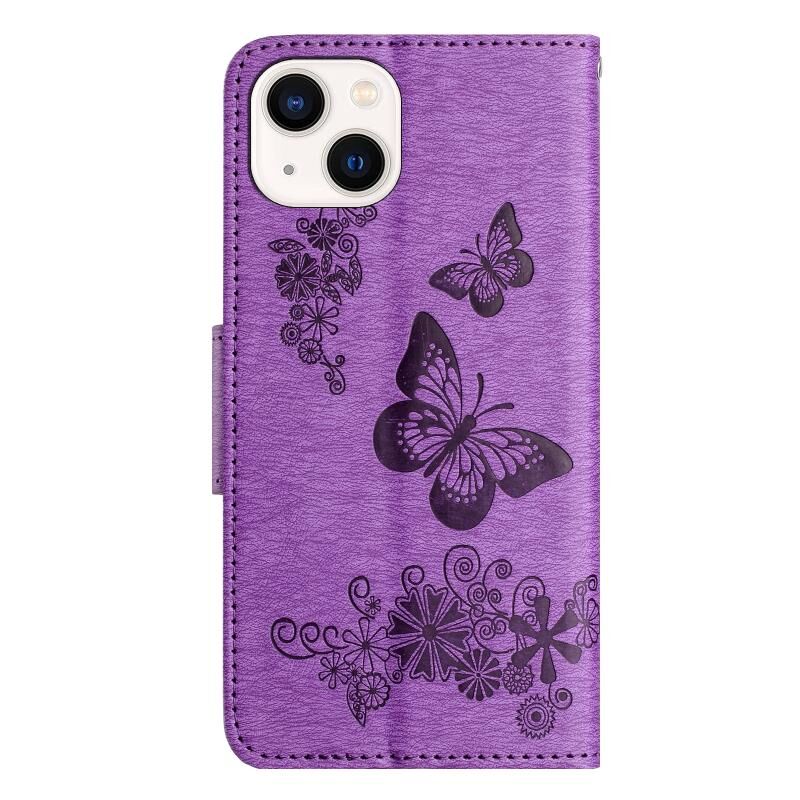 For iPhone 15 Butterfly Embossed Flip Leather Phone Case(Purple)