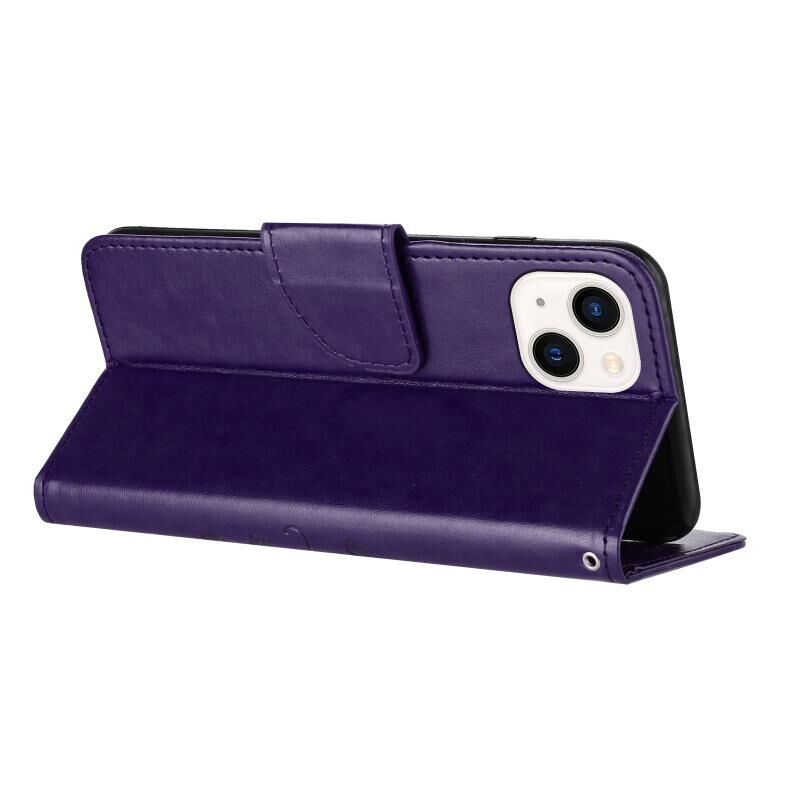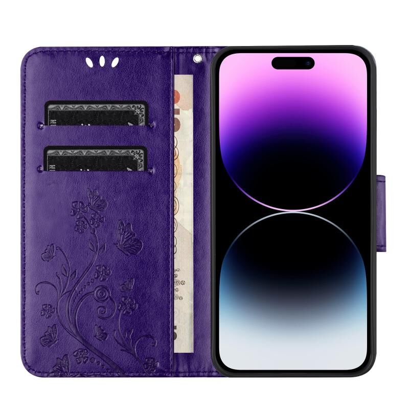 For iPhone 15 Butterfly Flower Pattern Flip Leather Phone Case(Dark Purple)