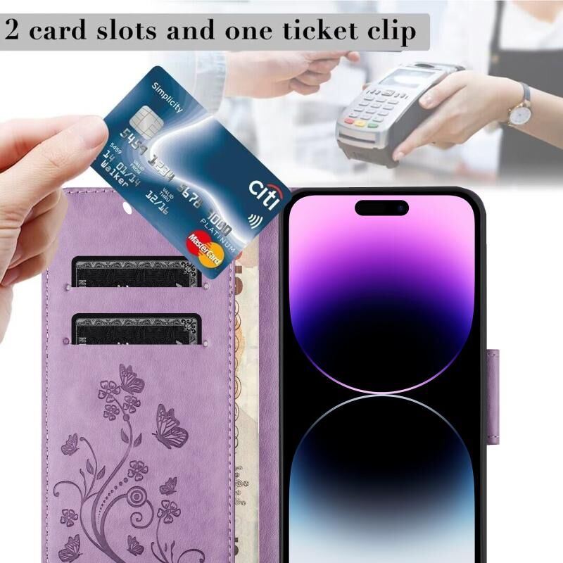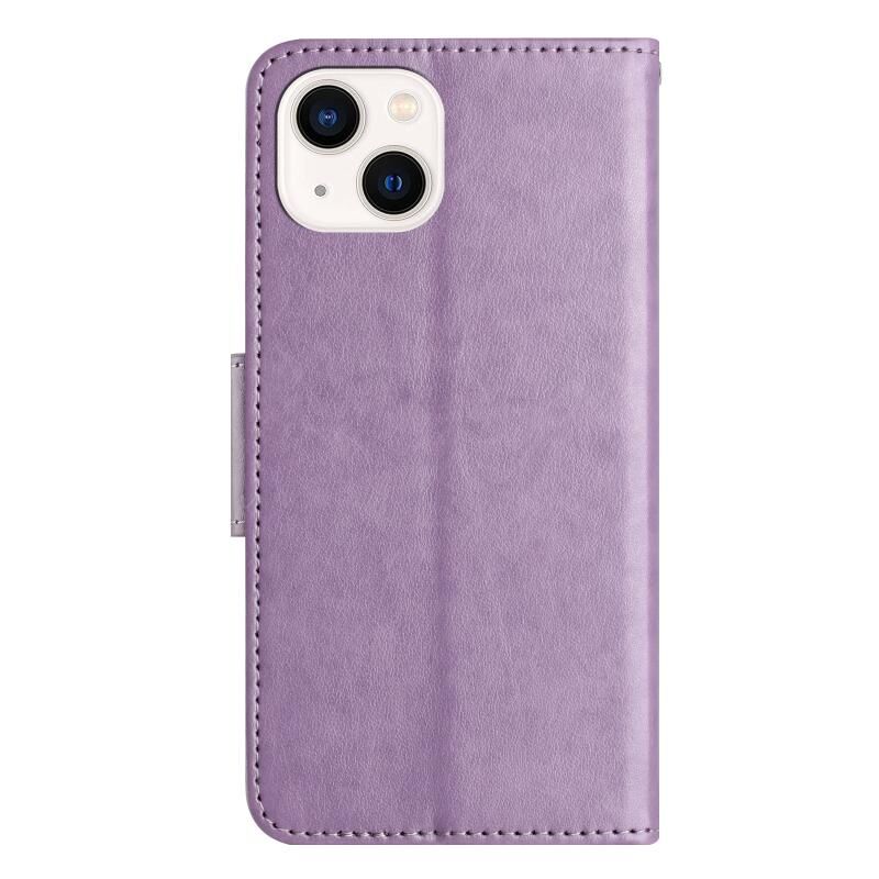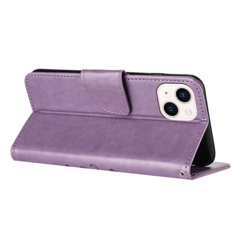 For iPhone 15 Butterfly Flower Pattern Flip Leather Phone Case(Light Purple)