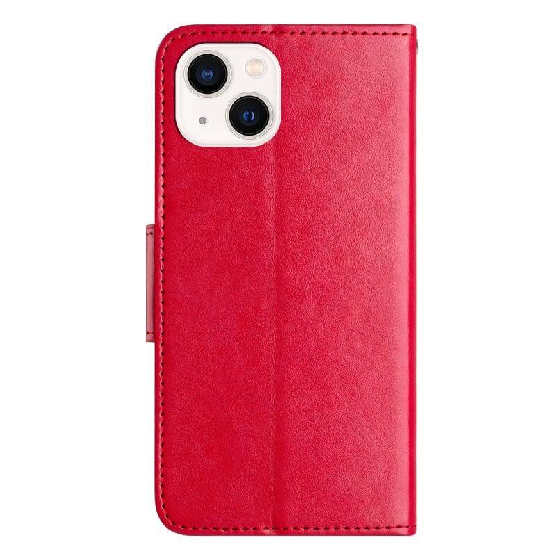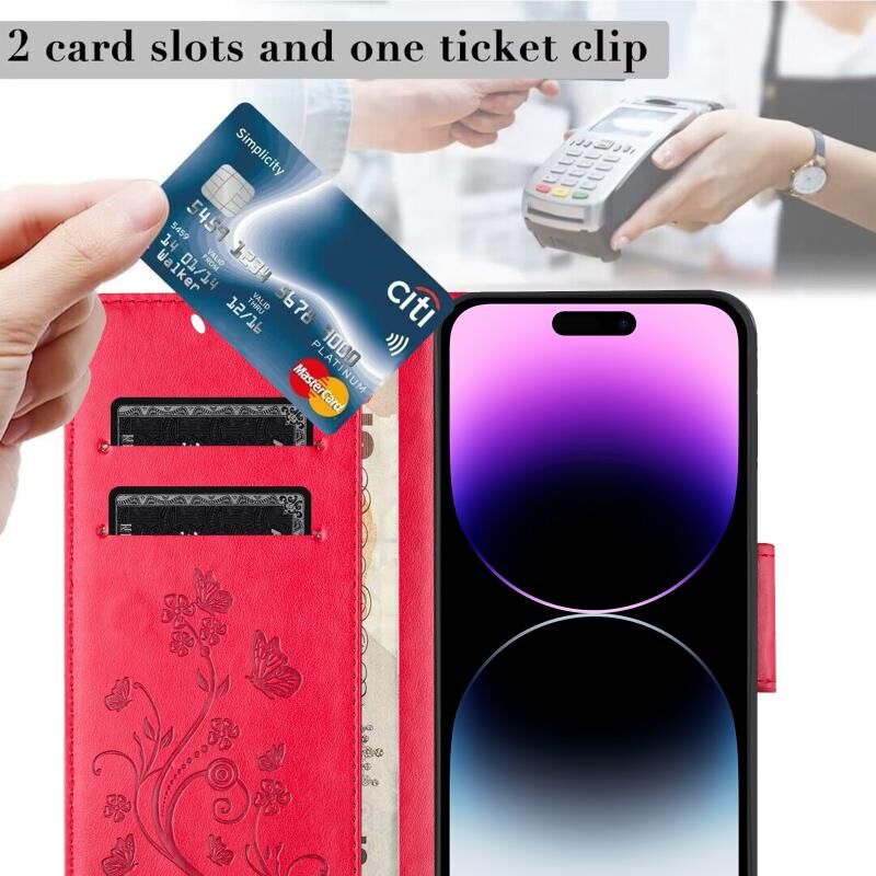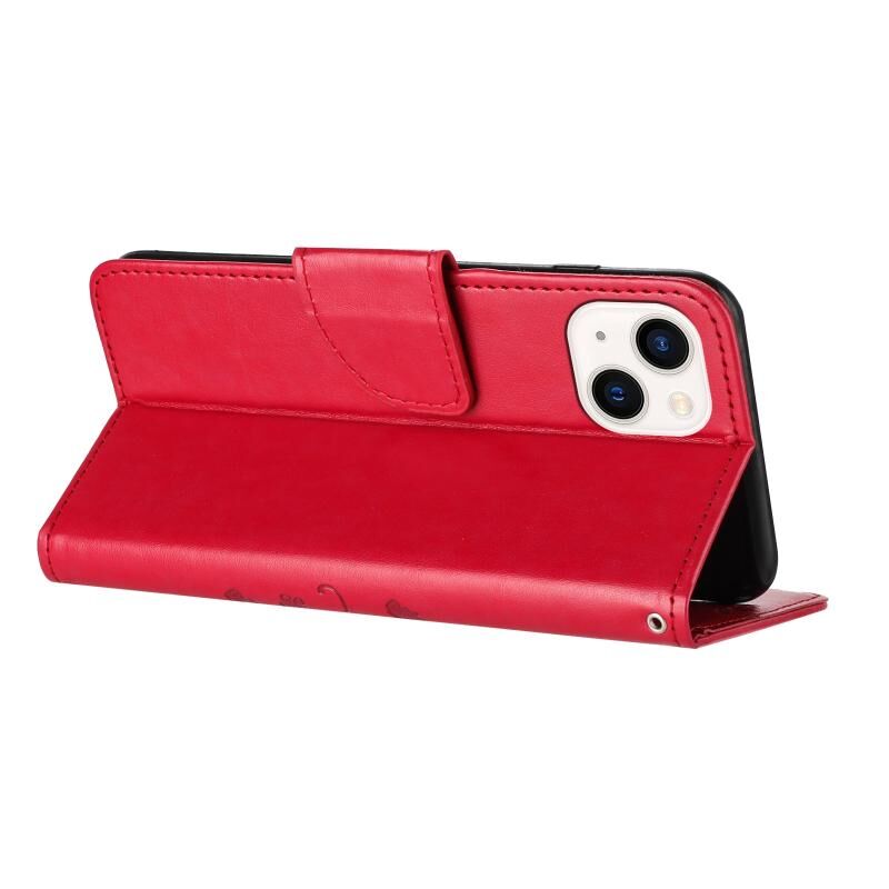 For iPhone 15 Butterfly Flower Pattern Flip Leather Phone Case(Red)