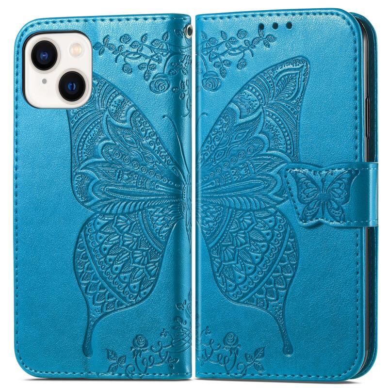 Θήκη τηλεφώνου από δέρμα με ανάγλυφο σχέδιο πεταλούδας και λουλουδιών για iPhone 15 (Μαύρο)