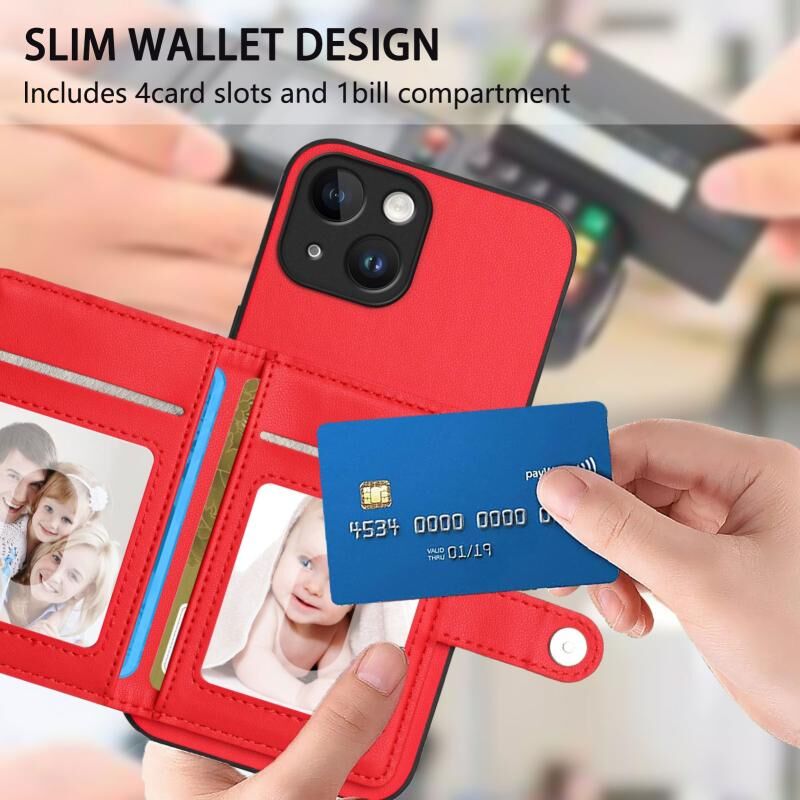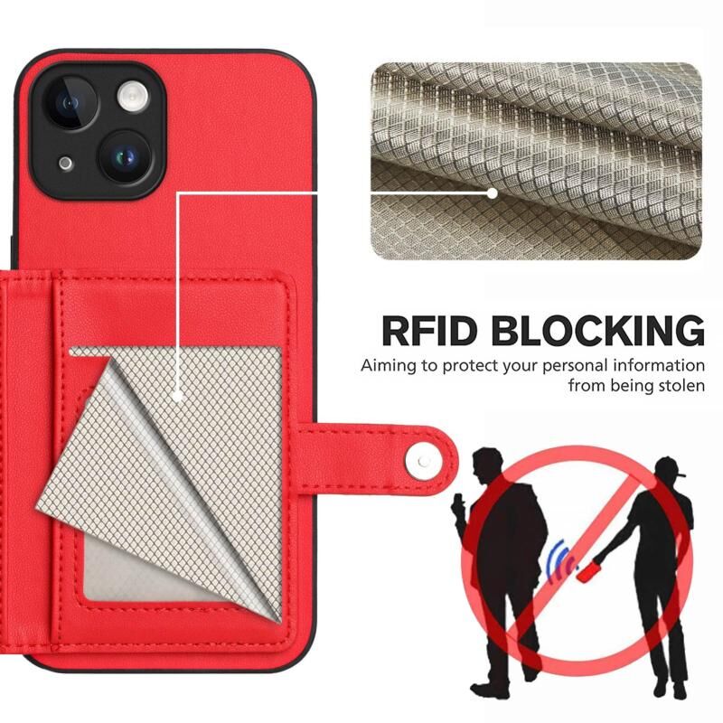 Θήκη τηλεφώνου για iPhone 15 με κάρτες και προστασία RFID κατά της κλοπής (Κόκκινο)