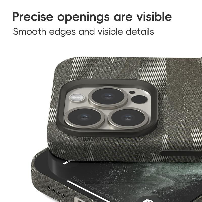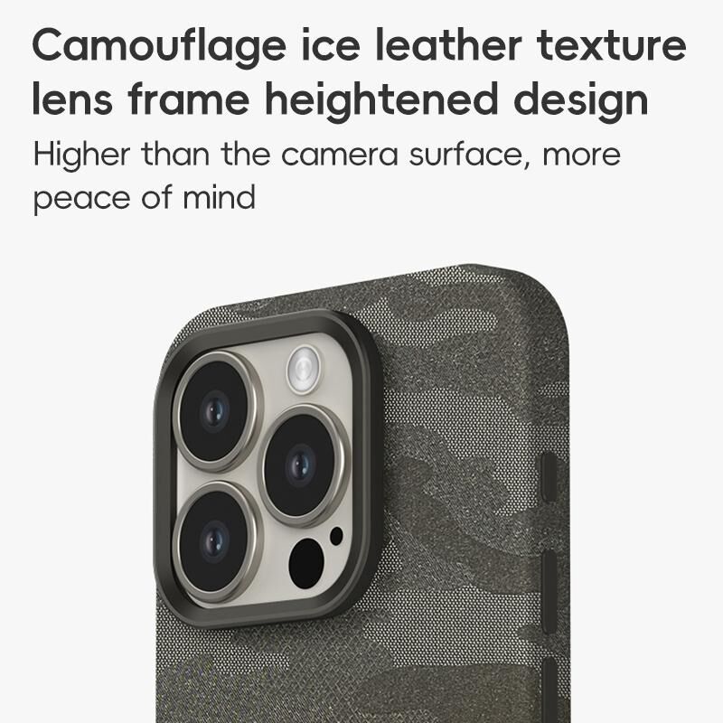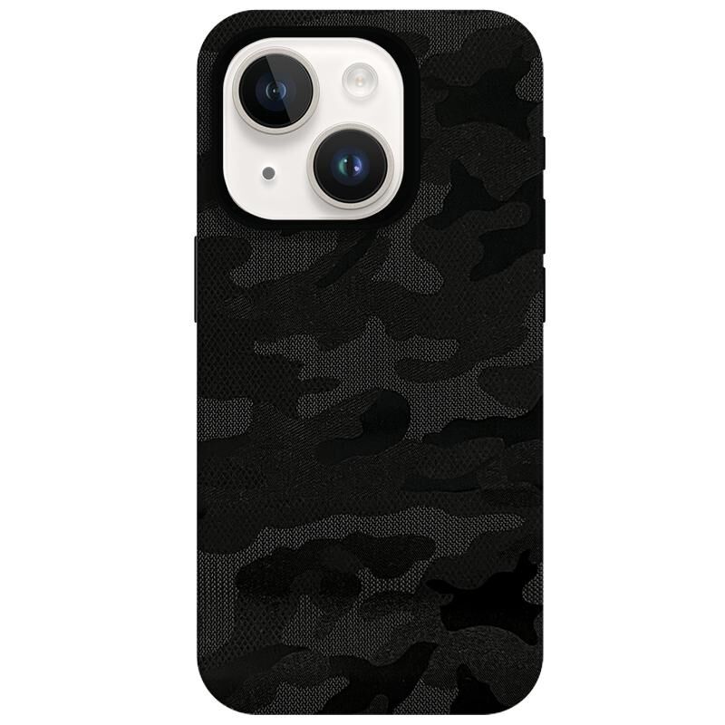 Θήκη τηλεφώνου για iPhone 15, υφή καμουφλάζ με αίσθηση πάγου, υβριδική PU PC με MagSafe (Μαύρο)