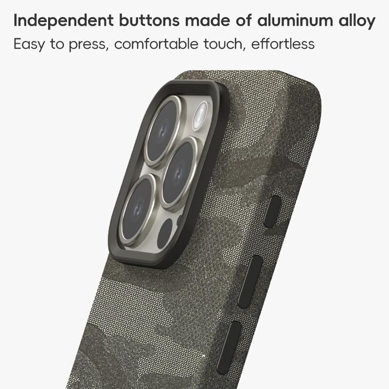 Θήκη τηλεφώνου για iPhone 15, υφή καμουφλάζ με αίσθηση πάγου, υβριδική PU PC με MagSafe (Καφέ)