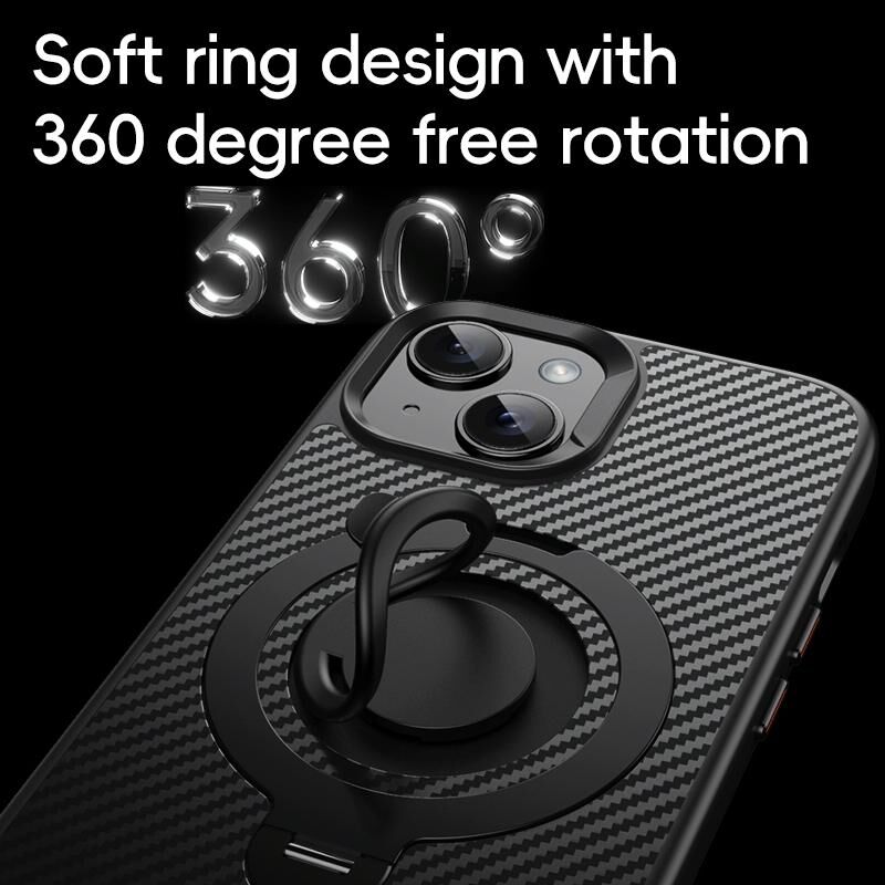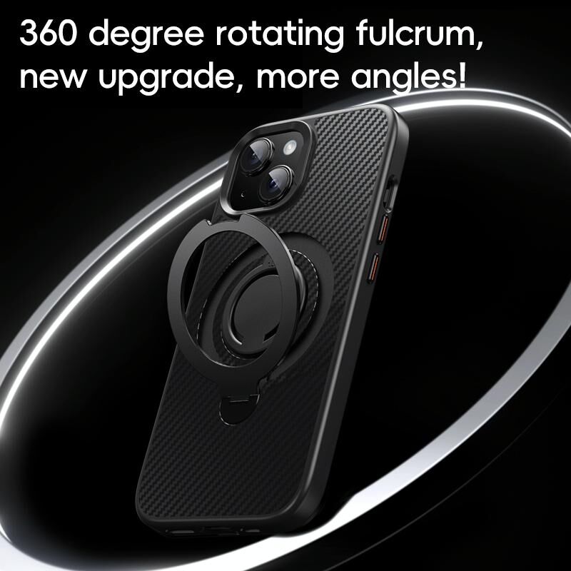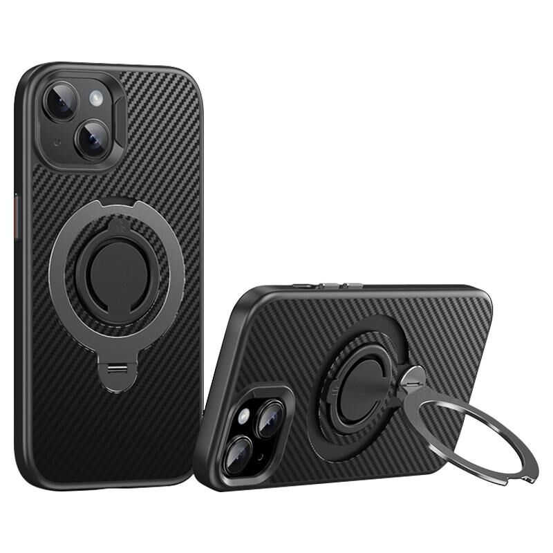 Θήκη τηλεφώνου MagSafe από ανθρακονήματα για iPhone 15 με περιστρεφόμενη βάση 360 μοιρών (Μαύρο Γκρι)