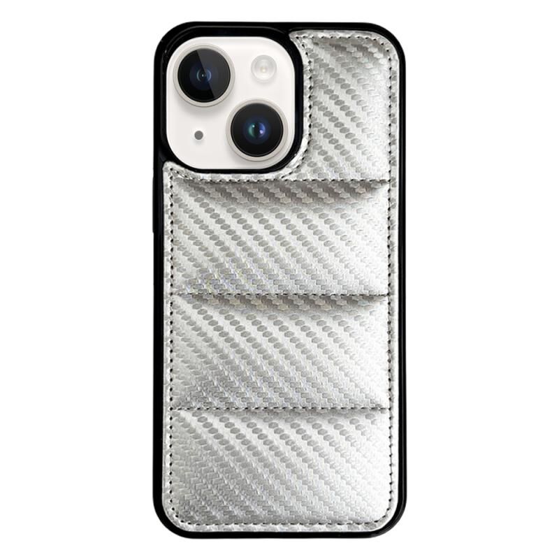 Θήκη τηλεφώνου για iPhone 15 με υφή ανθρακονήματος (Ασημί)