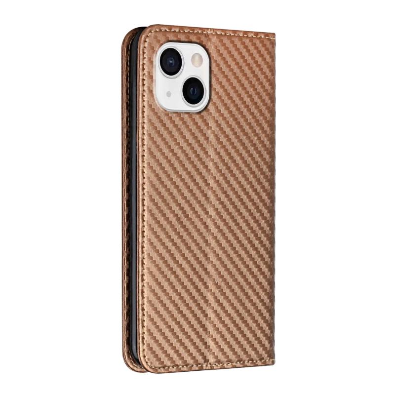 For iPhone 15 Carbon Fiber Texture Flip Holder Leather Phone Case(Brown)