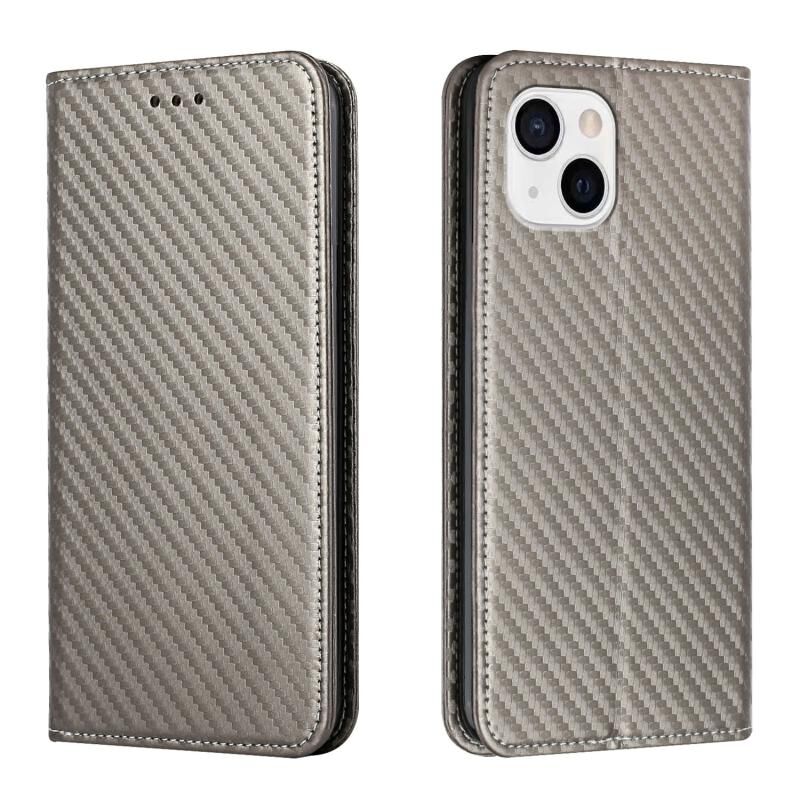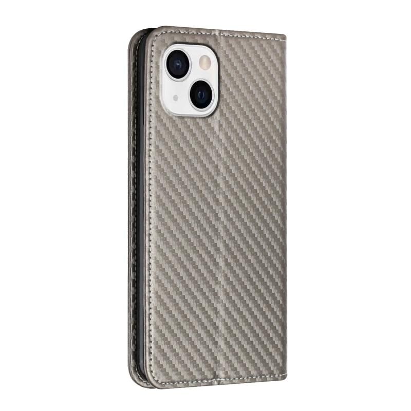 Θήκη τηλεφώνου δερμάτινη με υφή ανθρακονημάτων, τύπου flip, για iPhone 15 (Μπλε)