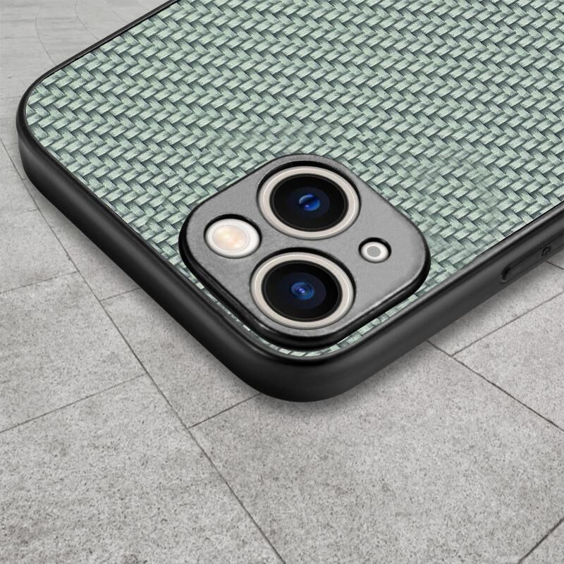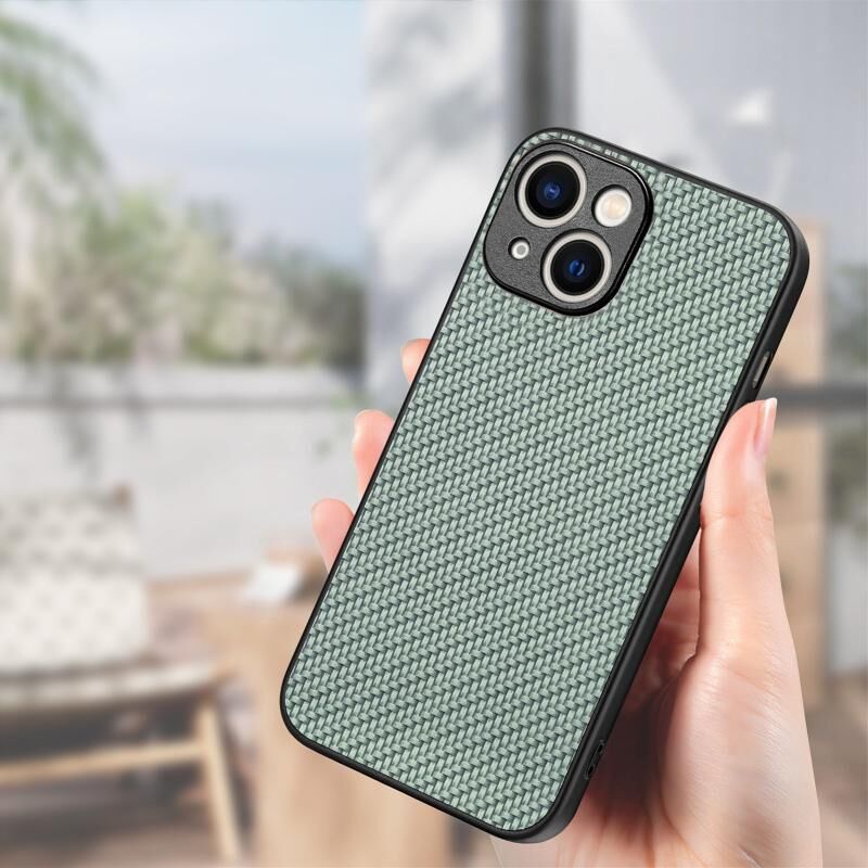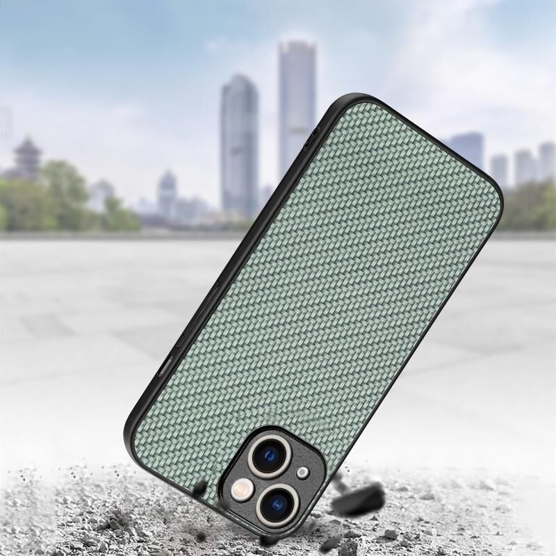 Θήκη τηλεφώνου για iPhone 15 με υφή ανθρακονήματος και δέρμα (πράσινο)