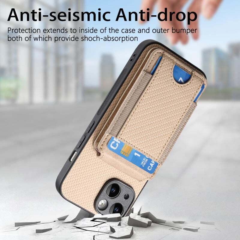 Θήκη για iPhone 15, κατασκευασμένη από ανθρακονήματα, κάθετη, τύπου πορτοφολιού με βάση στήριξης (Μπλε)