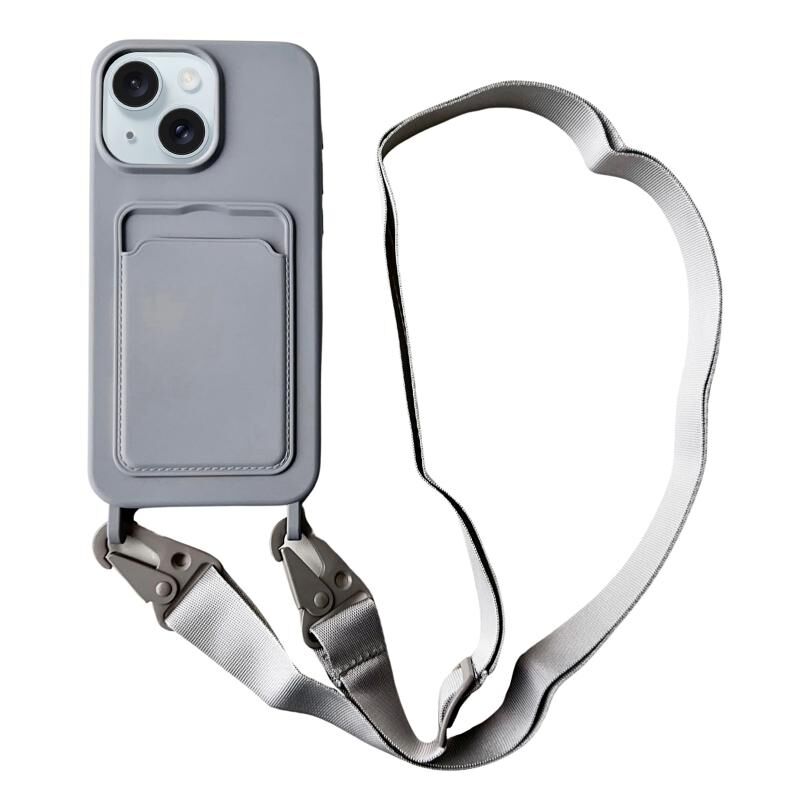 Θήκη για iPhone 15 με θήκη κάρτας, υγρή σιλικόνη με κορδόνι (Καφέ)