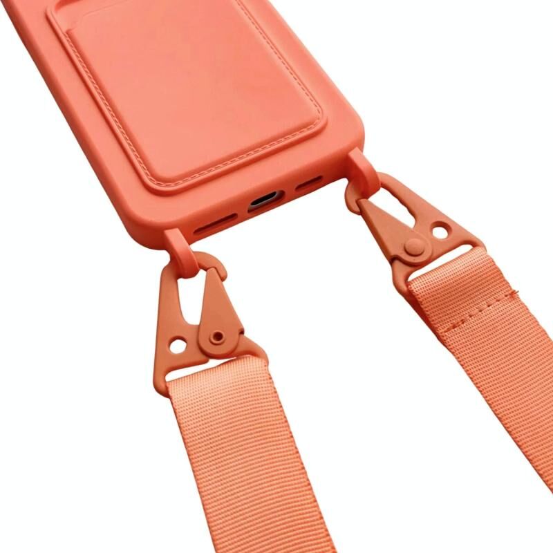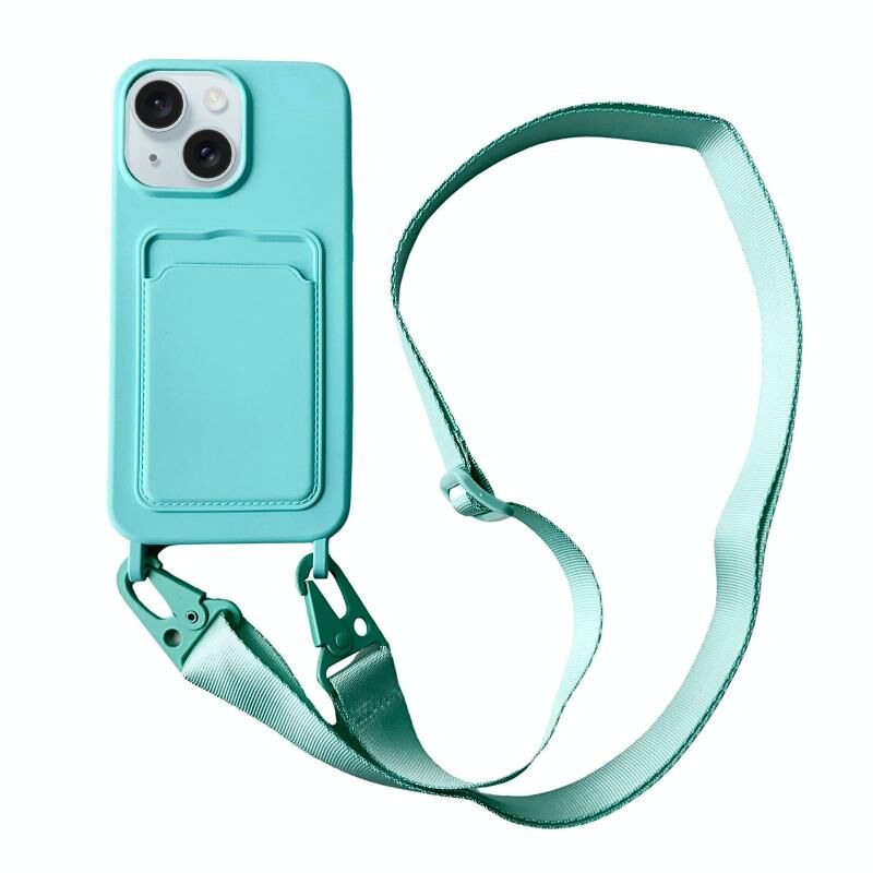 Θήκη για iPhone 15 με θήκη κάρτας, υγρή σιλικόνη με κορδόνι (Καφέ)