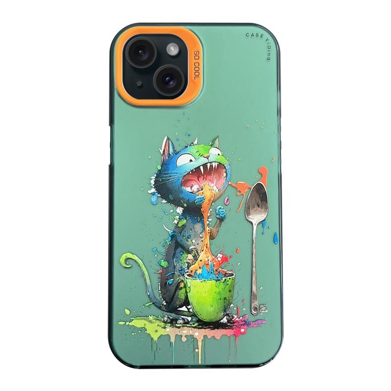 Θήκη τηλεφώνου για iPhone 15, PC + TPU με σχέδια καρτούν και graffiti (Μπλε Γάτα)