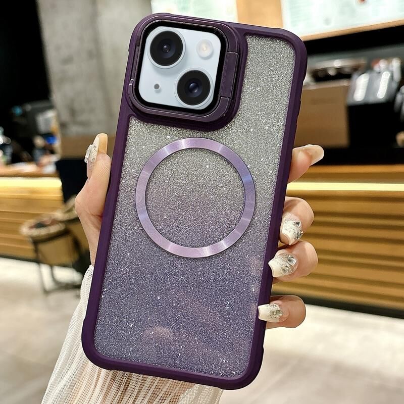 For iPhone 15 CD-grain Gradient Glitter Magsafe Acrylic Hybrid TPU Phone Case(Purple)