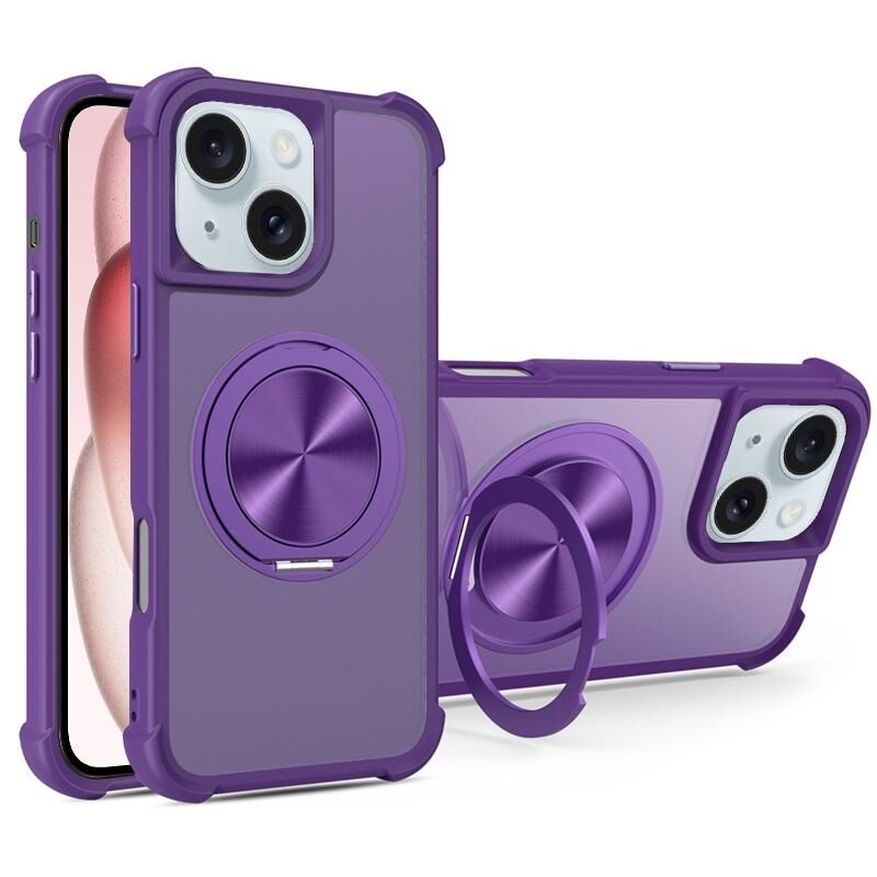 For iPhone 15 CD Texture 360 Degree Rotating Holder MagSafe Phone Case(Purple)
