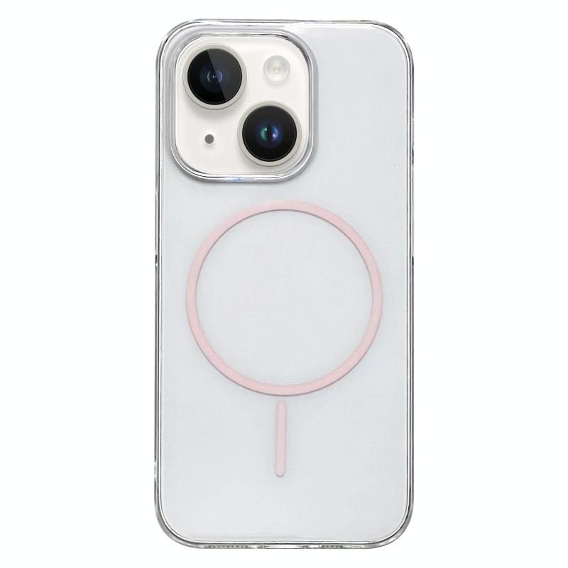 For iPhone 15 Clear Color PC Thin Circle MagSafe Phone Case(Pink)