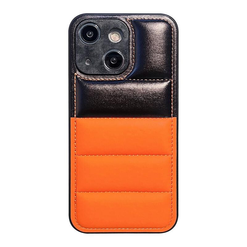 Θήκη τηλεφώνου για iPhone 15, Μπουφάν με χρωματικούς συνδυασμούς (Μαύρο Πορτοκαλί)