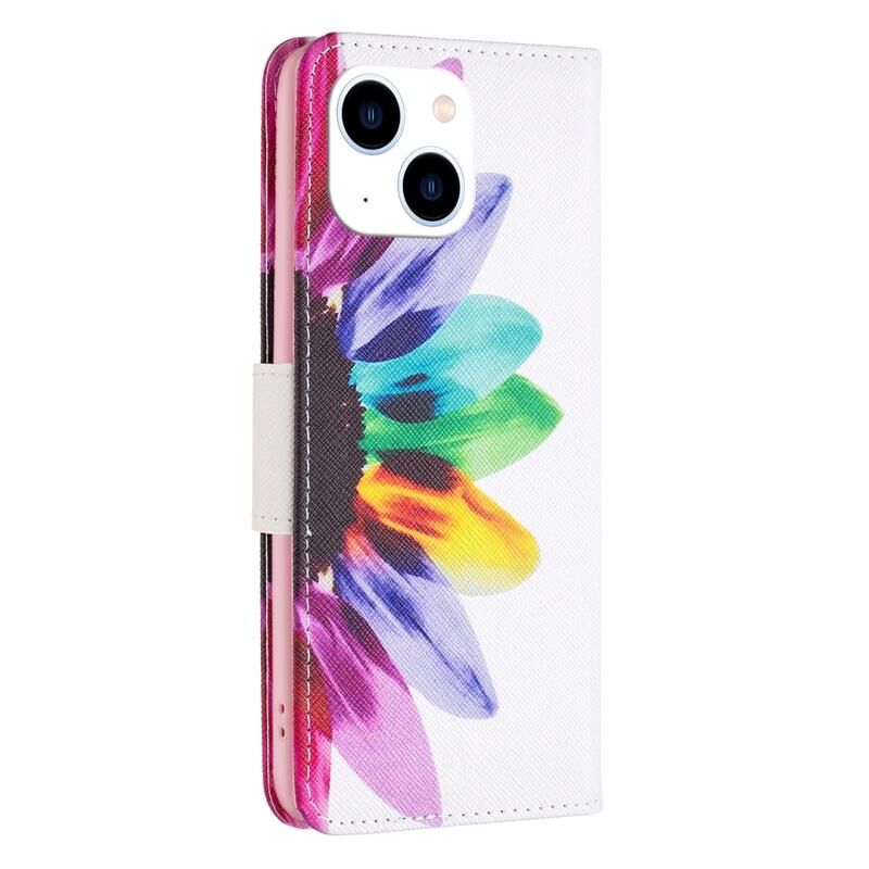 Θήκη τηλεφώνου από δέρμα με έγχρωμο σχέδιο για iPhone 15 (Ηλίανθος)