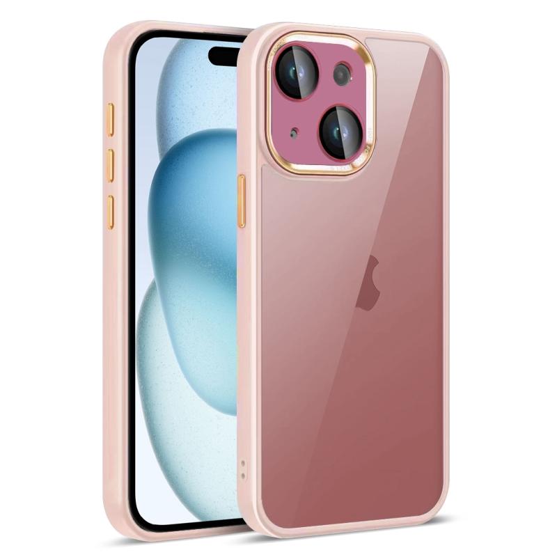 For iPhone 15 Colorful Armor Lens Film Translucent Phone Case(Pink)