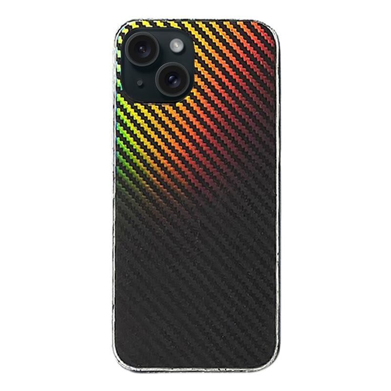 Αυτοκόλλητο για iPhone 15, πολύχρωμο, ματ (3D Laser Carbon Fiber) για την πίσω πλευρά του τηλεφώνου.