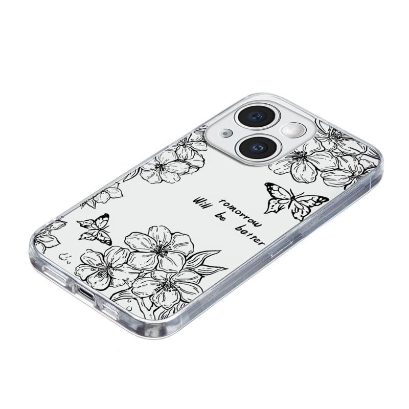 For iPhone 15 Colorful Painting Pattern TPU Phone Case(Butterfly Flower)