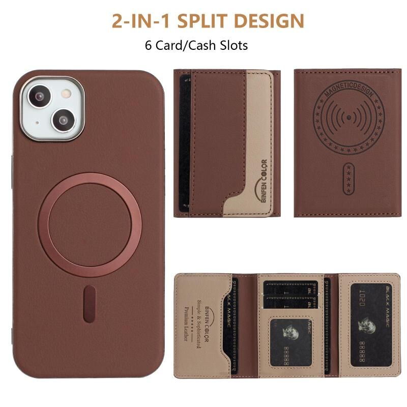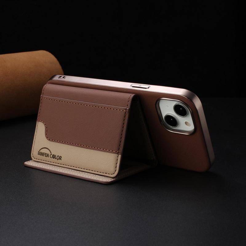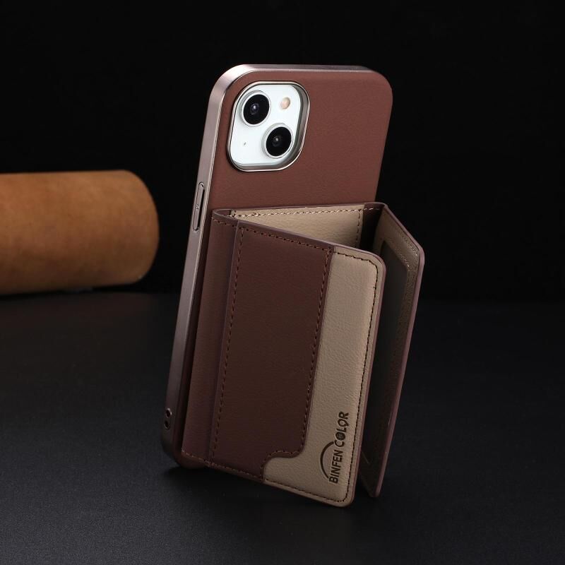 Θήκη τηλεφώνου με μαγνητική κάρτα οριζόντια για iPhone 15, σε πράσινο χρώμα, με τεχνολογία RFID και MagSafe. (Καφέ)