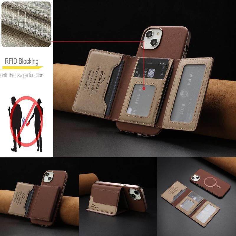 2. Μαγνητικό τριπλό πορτοφόλι: Διαθέτει οριζόντια πτυχή με ισχυρό μαγνητικό κλείσιμο για εύκολη πρόσβαση και ασφαλή αποθήκευση.