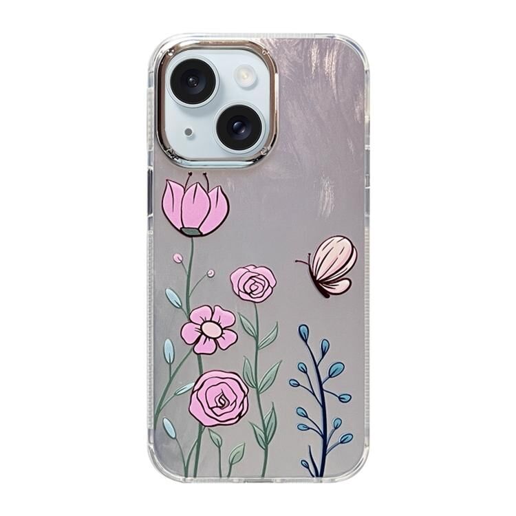 Θήκη τηλεφώνου για iPhone 15, Ψύξης, Ελαφριά, TPU + PC (Πεταλούδες Λουλούδια)