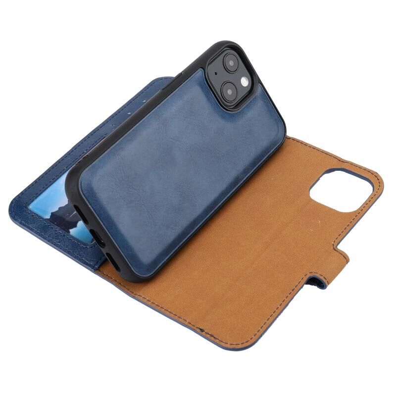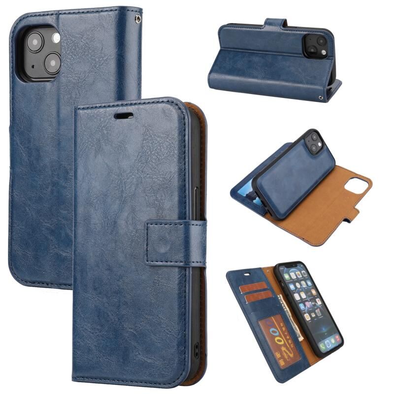 Θήκη για iPhone 15, αποσπώμενη οριζόντια, από PU δέρμα με υφή Crazy Horse (Μπλε)