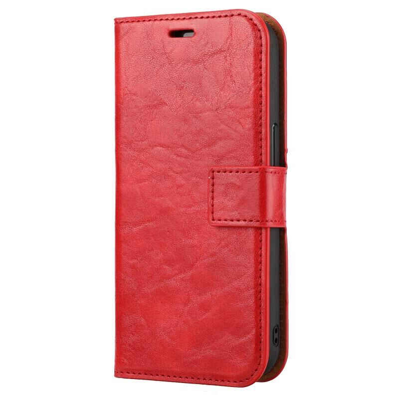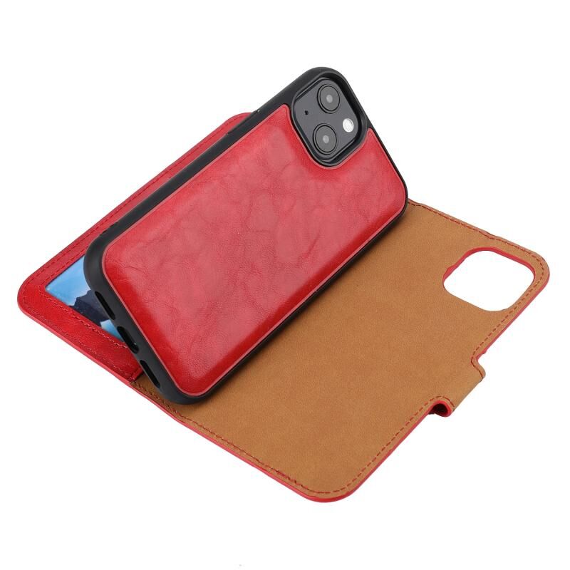 Θήκη για iPhone 15, αποσπώμενη οριζόντια, από PU δέρμα με υφή Crazy Horse (Κόκκινο)